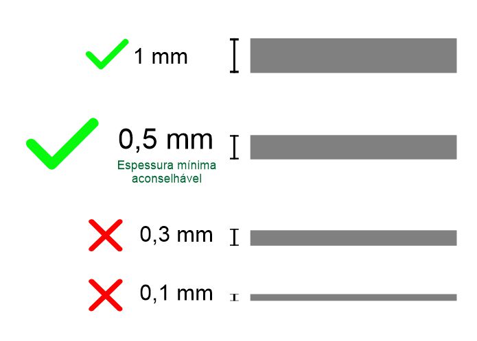 Espessura mínima aconselhável - 0,5mm (meio milímetro)